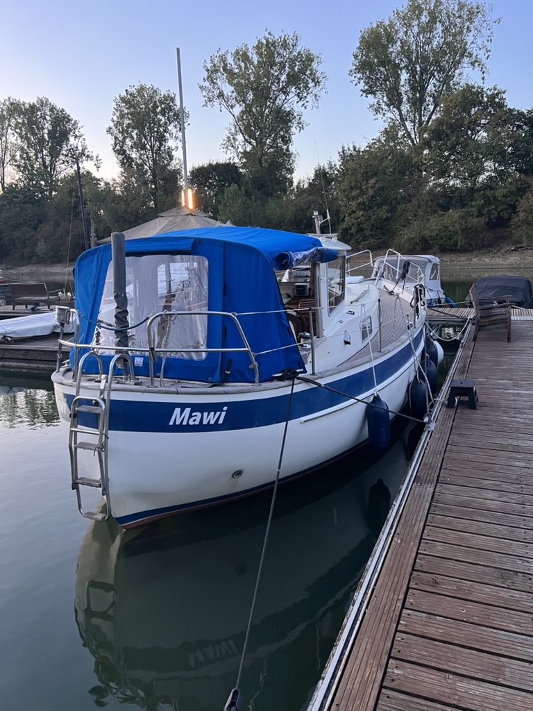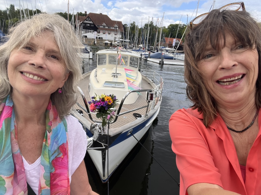 Aber alles gut nach Neuss transportiert und von meiner Schwester Anja abgeholt worden – wie wunderbar! Am nächsten Tag Gerödel : Putzen, Einkaufen mit Anjas und deren Autos Hilfe, Sortieren, Motor ausprobieren, Überlegungen, wie ich aus dieser ultrakleinen Lücke im Hafen, die sich mein Liegeplatz nennt, rauskommen soll. Aber was für ein Glück!!! Markus, der Hafenmeister, kommt vorbei und ruft 3 Männer (zwei davon ca. Mitte 50, Egon, mein Bootsnachbar, 88 Jahre alt) mit den Worten: „Jungs, sollen wir der Bea nicht mal schnell das Boot drehen?“ Innerhalb von gefühlt 3 Minuten lag Mawi anders herum und ich war froh.