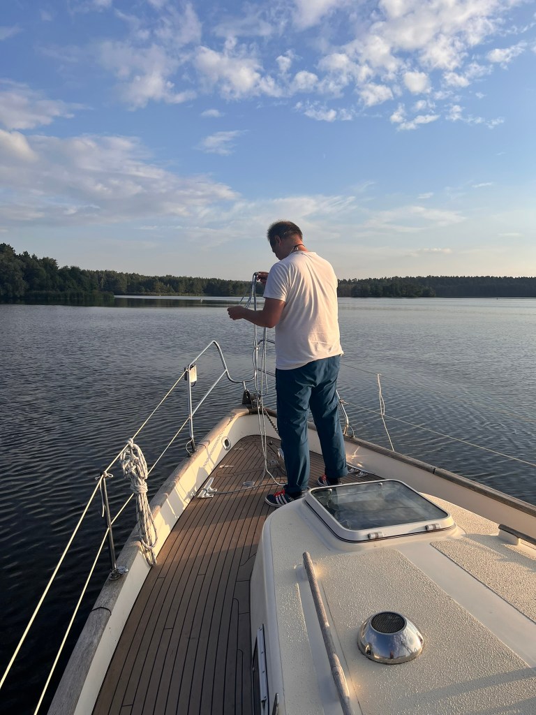 Abfahrtstag ist der 28.8.25 – es regnet in Strömen. Also rein in die Seglekluft und Abschied vom VsAW… Bodo ist wieder dabei, ab Hannover dann auch Birgit, also die schon eingeschworene Crew, super Einstieg in die geplante Tour!