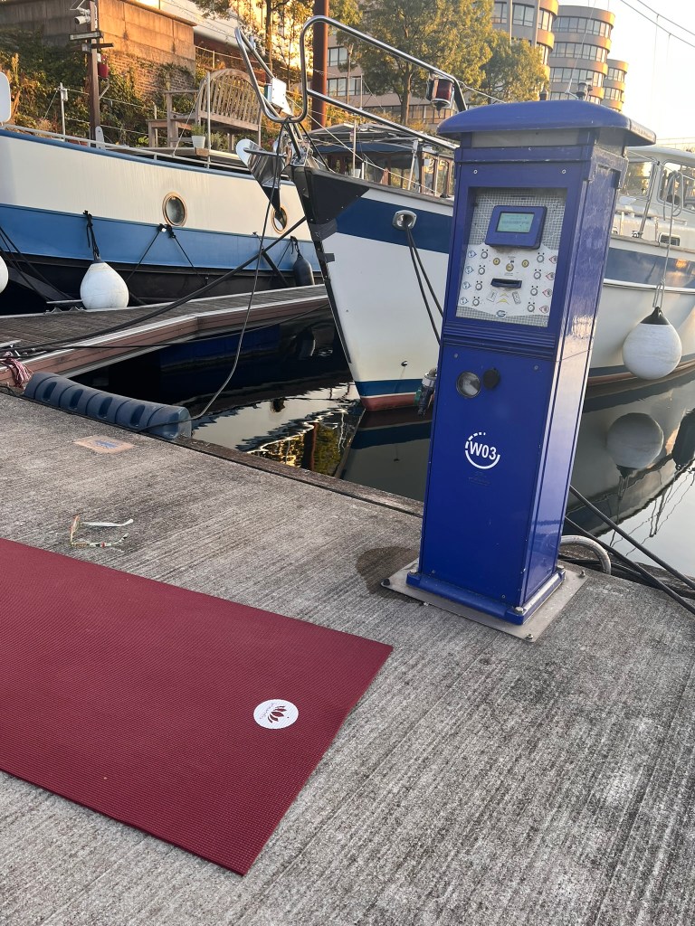 Eigentlich hole ich morgens ganz brav meine Yogamatte hervor und mache auf dem Steg Gymnastik und dann eine 7 Minuten „Challenge“ (danke für den Tipp, Micha). Aber heute erwachen wir ja auf dem Boot und fahren nach dem ersten Kaffee durch den kleinen Nierepper Kanal zurück zum Elbe-Havel Kanal. Kurz danach kommt mit 18,5m Hub eine der größten Binnenschleusen der gesamten Strecke. Es ist eine Doppelsparschleuse und kann durch 3 in den Wänden versteckte, übereinanderliegende Sparkammern ca. 60% des Wasserverbrauchs einsparen.