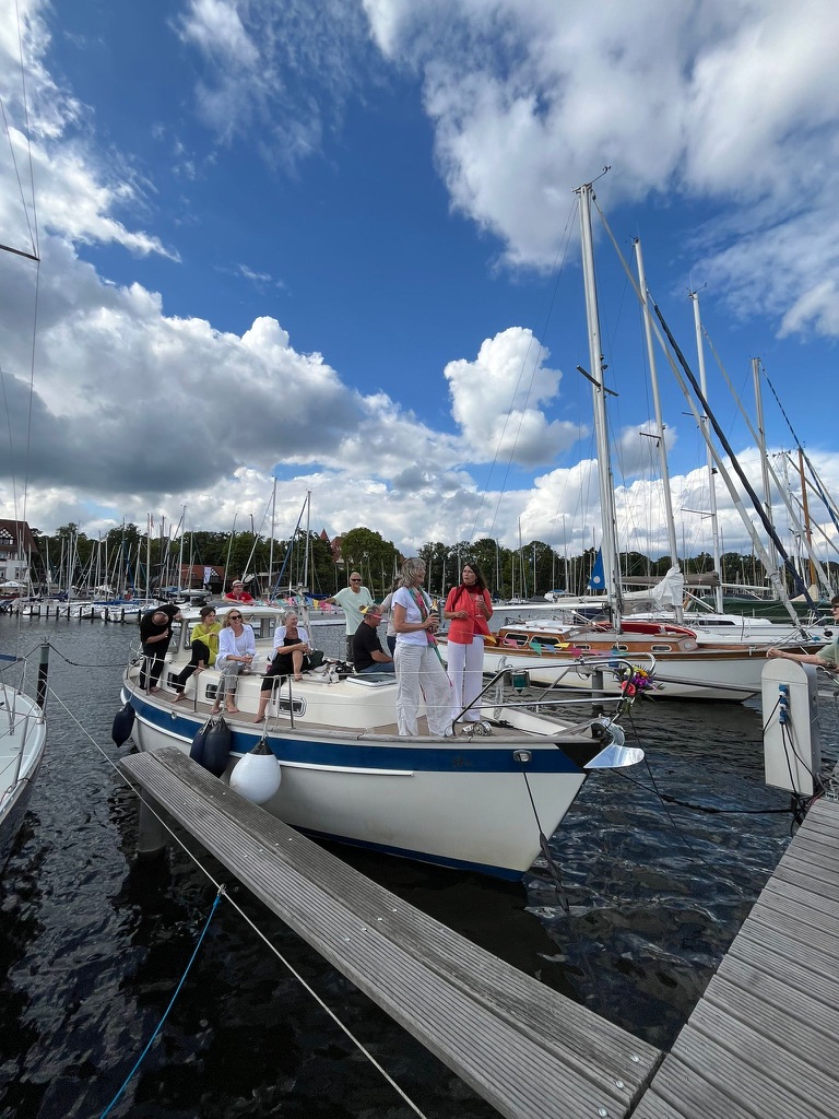 Tag 3 bis Schwedt – dort Anlegen bei viel zu wenig Wassertiefe (wie ist denn eigentlich das Echolot eingestellt?) und ein Fest von 300 Studierenden im Hafen. Zum Glück keine AFD-Truppe (das besorgte uns mehr, als die zu erwartende Lautstärke), sondern Formel 1 Fans :)! Und: wir glaubten es kaum: um 2.00 morgens war tatsächlich Ruhe. Das wäre in meinen Studentinnenzeiten anders gelaufen…