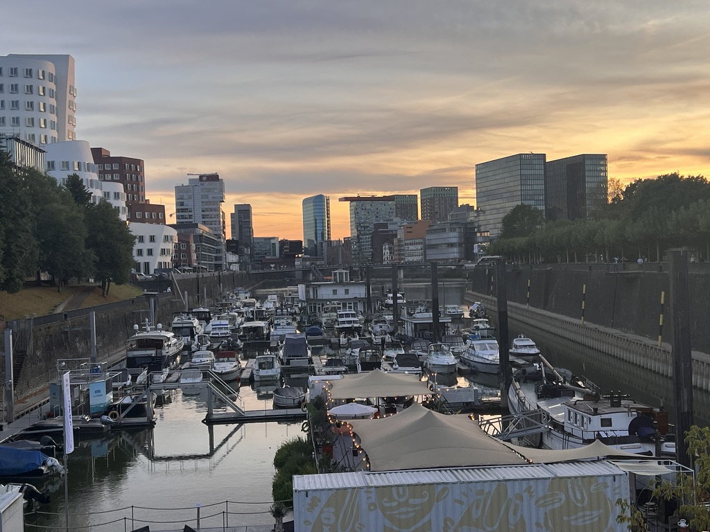 Und dann nähern wir uns Düsseldorf und ich finde das ganz großartig. Ab der Kniebrücke steuern die anderen und ich sitze vorne und bin sehr begeistert mit dem eigenen Boot hier anzukommen.