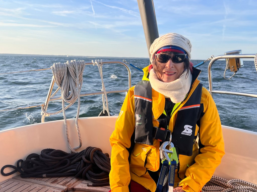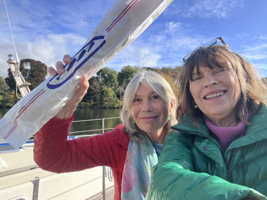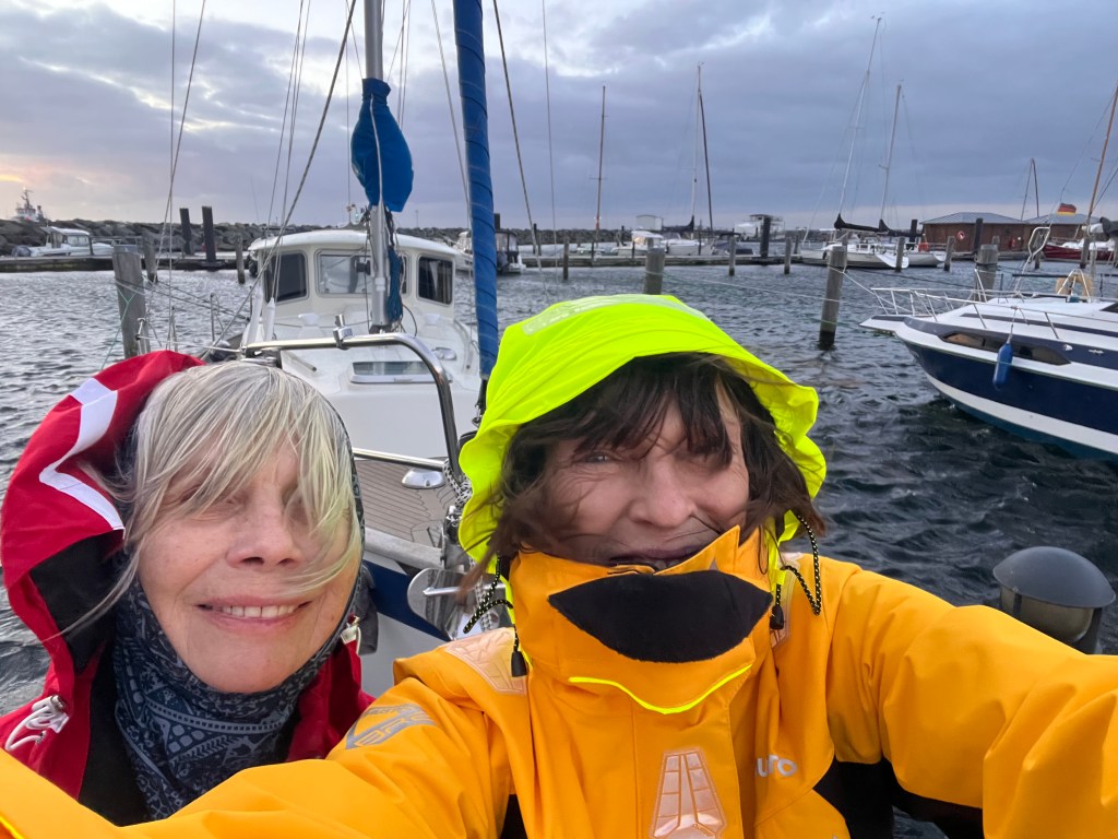 Auch mal schön – kein Wind, keine Welle, warten auf Birgit und allerlei Besuche. Den ersten Morgen, montags, mache ich nichts 🙂 und erhole mich von den rheinischen Strapazen. Am Nachmittag gehts dann per Zug etwas umständlich (erster Zug ausgefallen) nach Aachen, wo mich Doris (meine längste beste Freundin) am Bahnhof erwartet. Wir gehen köstlich speisen und verbringen dann einen Freundinnenabend, bzw. eine Freundinnennacht wie vor 30 Jahren – heißt: wir quatschen bis 4.00 morgens – wunderbar! Nur am nächsten Morgen merken wir leider, dass auch an uns die Zeit nicht spurlos vorüber gezogen ist. Aber das bißchen Müdigkeit war der Abend allemal wert. Ich lasse mich noch bei einem von Doris Ärztefreunden schnell Grippe impfen und nach einem Supermarktbesuch bringt mich Doris zurück zu Mawi. Leider haben wir ein Selfie vergessen…