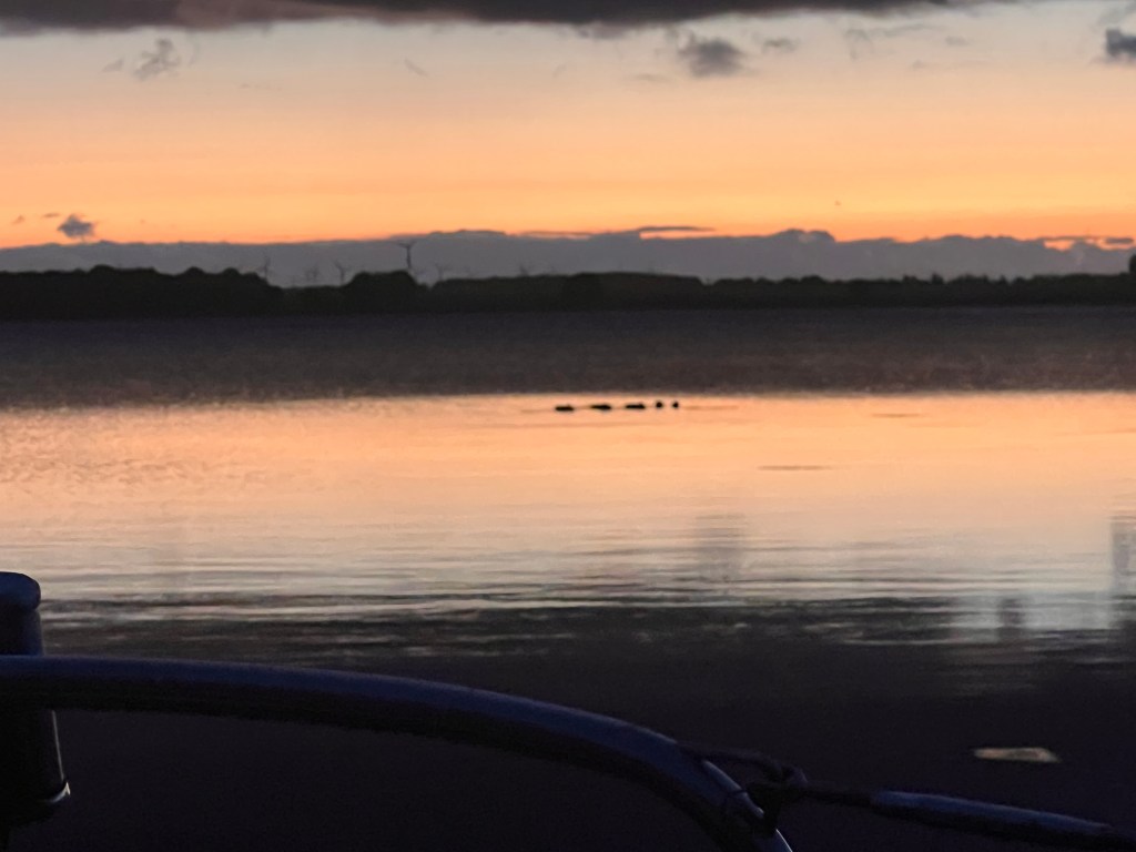 Aber es wird später und später und wir sind noch nicht da! Die geplante Anlegedämmerung verstreicht, es wird dunkel und Bodo muss steuern – ich sehe im Dunkeln nix.