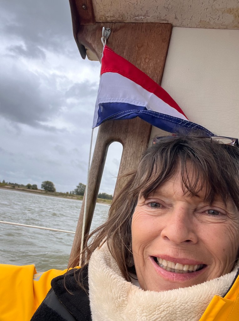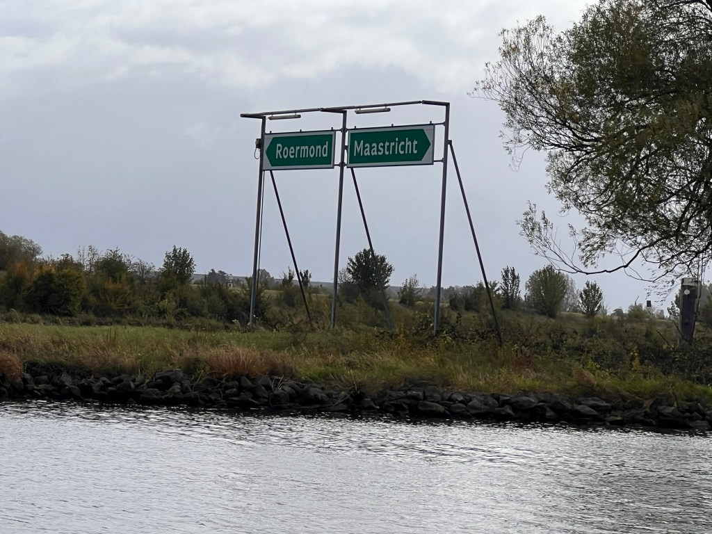 Wir beschliessen nicht – wie ursprünglich geplant – in Nijmegen zu bleiben, sondern das bessere Wetter noch ein wenig zu nutzen. Nach einer Schleuse kommt der 13km lange Vaal-Maas Kanal, nach einer weiteren Schleuse sind wir auf der Maas. Nach einigen Berechnungen: Geschwindigkeit stromaufwärts – Uhrzeit – wieviel km/h machen wir bei ca. 5,8 Knoten …ist klar: wir schaffen es bis Venlo und werden dort kurz vor Einbruch der Dunkelheit, also noch im Dämmerlicht ankommen. Keine Pufferzeit – sehr schlecht! So sollten weder Mann noch Frau planen und wir sollten das eigentlich wissen! Aber ich würde soooo gern bis Maastricht kommen und Bodo hat nur 3 Tage Zeit! Zunächst auch auf der Maas eine ordentliche Welle..