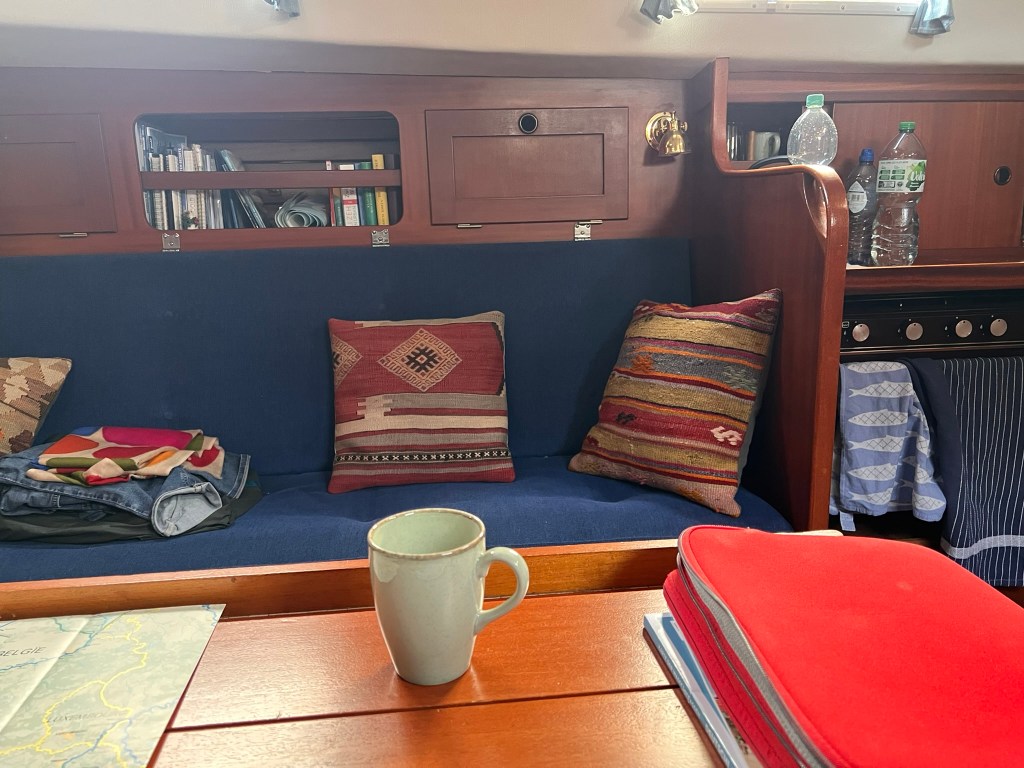 Was für ein letzter Tag!!! Regen ohne Ende, viel Wind, es wackelt hin und her. Ich räume heute innen auf und habe schon recht schnell 6 Taschen beisammen. Wie bedauerlich, wo ich gefühlt doch erst gerade alles so schön eingerichtet habe… Stoße mich dauernd irgendwo an – besser aufpassen! Telefoniere mit Micha (Segelschule Michael Weber) und bin erleichtert, dass der Frostschutz wohl auch bis Dezember Zeit hat, denn dafür ist man/frau wohl besser zu zweit. Eine Person füllt den Frostschutz ein, die andere sagt Bescheid, wenn dieser wieder aus dem Boot herauskommt.
