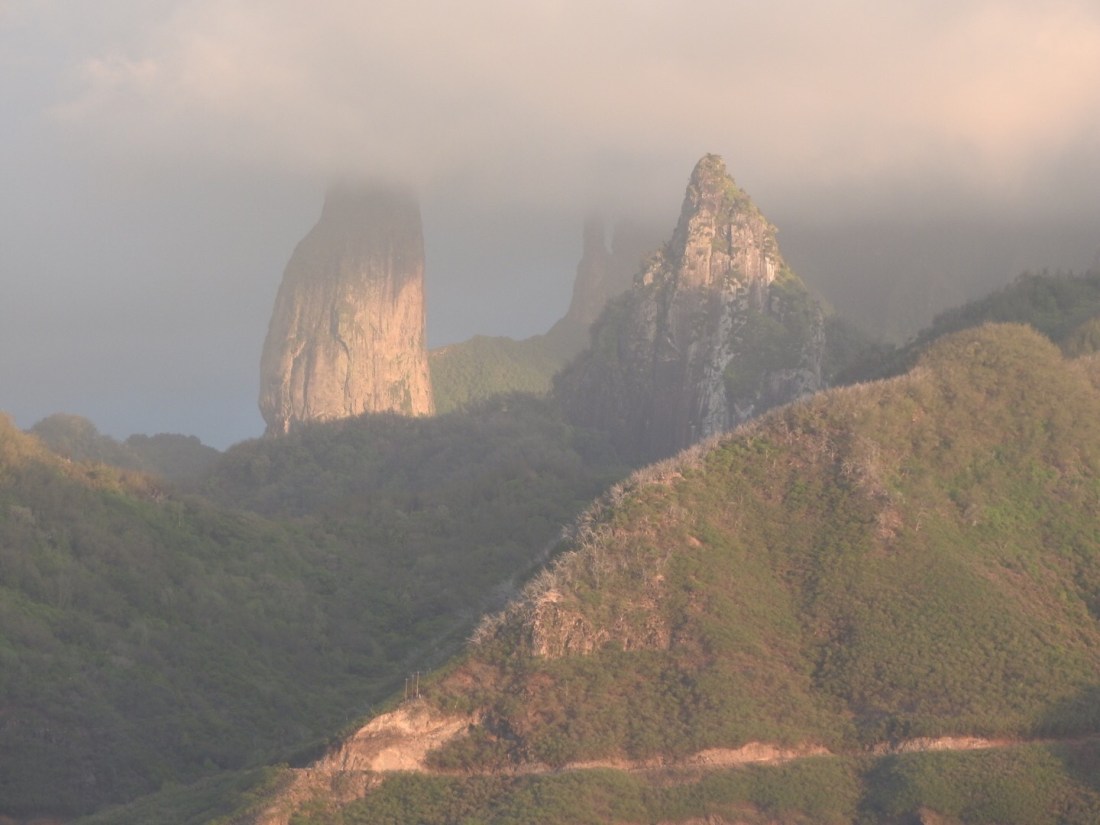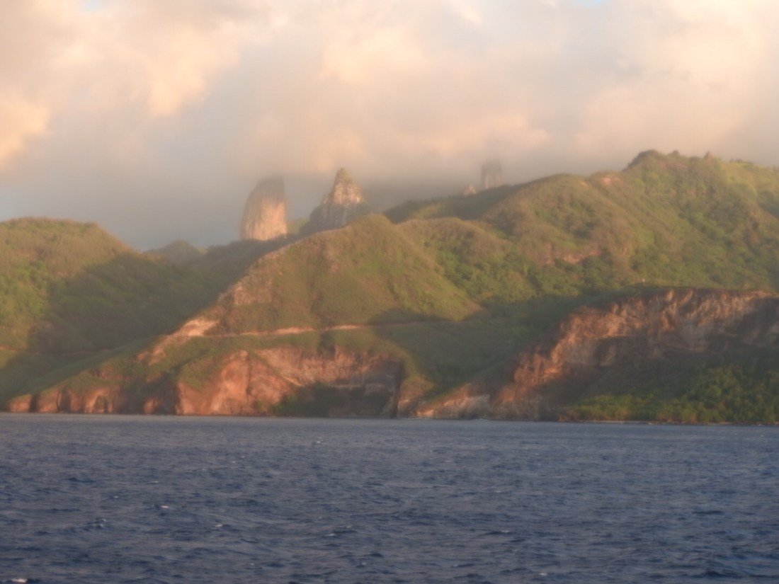 ..die älteste der Inseln, halbrund, wie Fatu Hiva. Die andere Hälfte ist jeweils unter Wasser.
