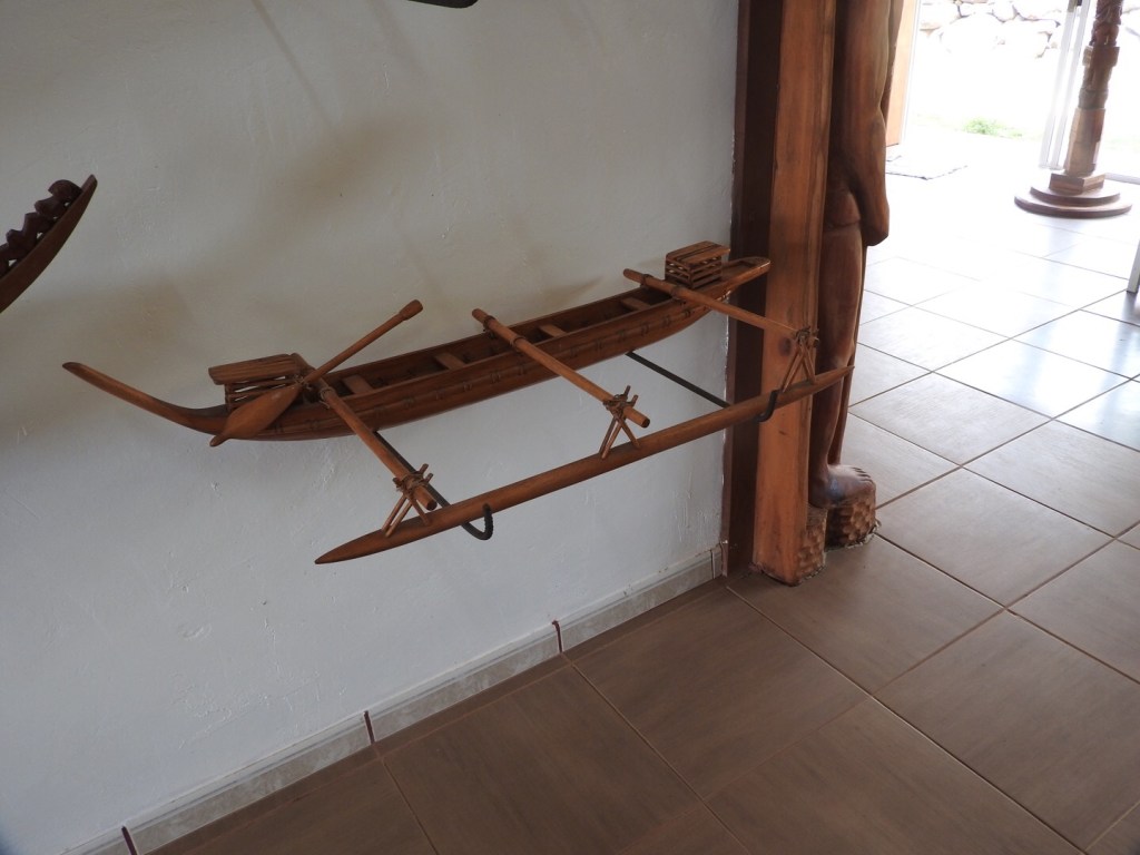 Nachmittags auf Tahuata, einer Insel, die nur durch den 4km langen Bordelais Channel von Hiva Oa getrennt ist. Kennenlernen von Ernesto, einem Exbotschafter Perus, der Schriften über den Einfluss Perus auf die Marquesas veröffentlicht hat. Wenn ich an meine kleine peruanische Figur denke, die ich im Alter von jungen 22 Jahren gekauft habe und mir die hiesigen Schnitzereien anschaue…wirklich ähnlich.