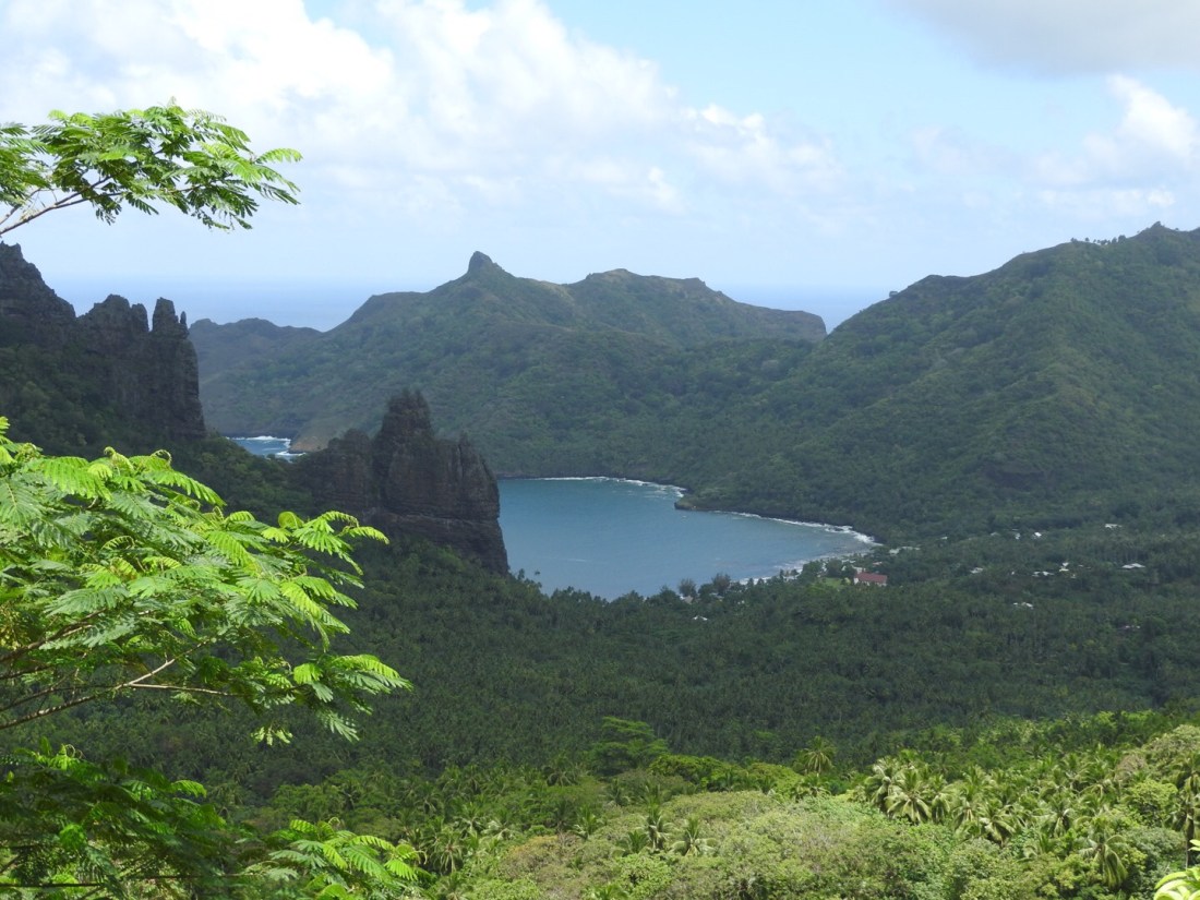 ...die schönste der Inseln und der Traum der Reiseträume…die entfernteste Insel von Tahiti aus gesehen obendrein…Klippen, Palmen, nur 2 Ortschaften, die durch eine nicht asphaltierte Straße miteinander verbunden sind: Omoa und Hanavave.