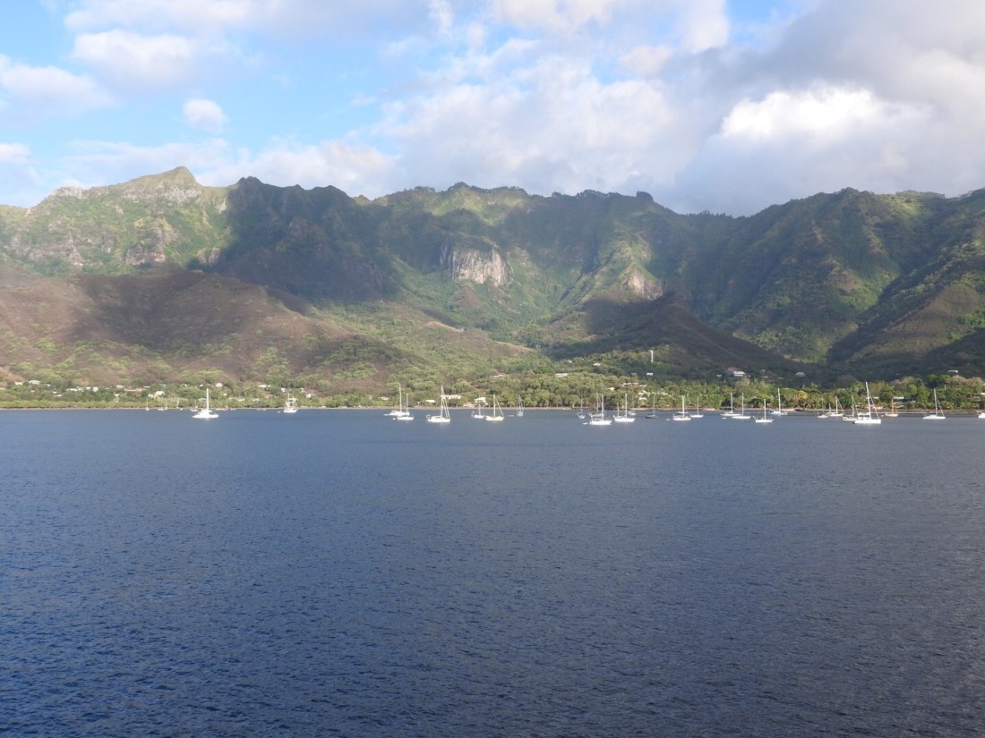 … Jugendliche und wir gut!), dann Abschied von den Inseln, bei Sonnenuntergang an Ua Pou vorbei gen Tuamotus und Gesellschaftsinseln, wo ein letzter Stop auf Bora Bora geplant war. Etwas Wehmut…
