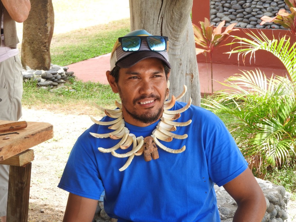 Nachmittags auf Tahuata, einer Insel, die nur durch den 4km langen Bordelais Channel von Hiva Oa getrennt ist. Kennenlernen von Ernesto, einem Exbotschafter Perus, der Schriften über den Einfluss Perus auf die Marquesas veröffentlicht hat. Wenn ich an meine kleine peruanische Figur denke, die ich im Alter von jungen 22 Jahren gekauft habe und mir die hiesigen Schnitzereien anschaue…wirklich ähnlich.